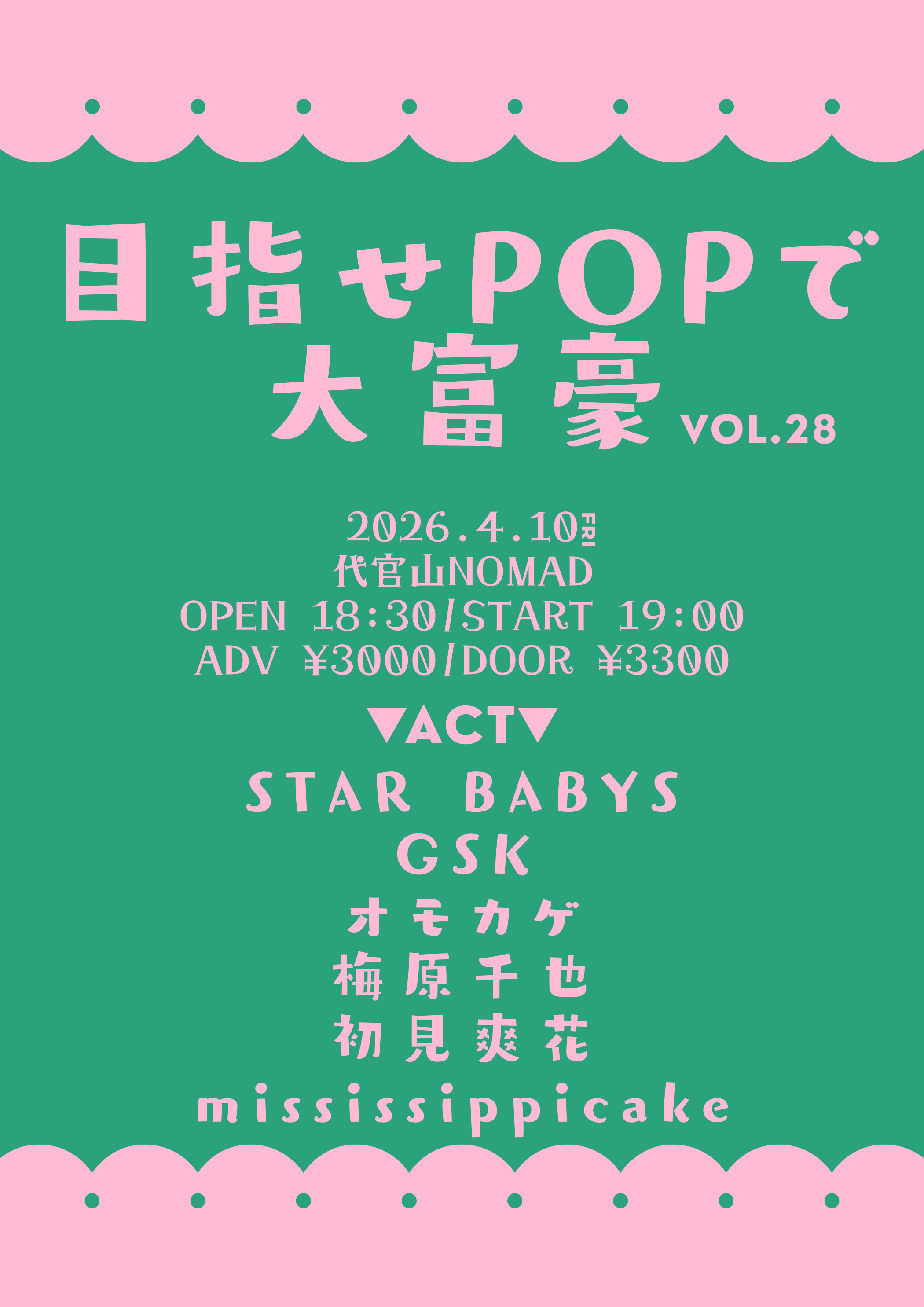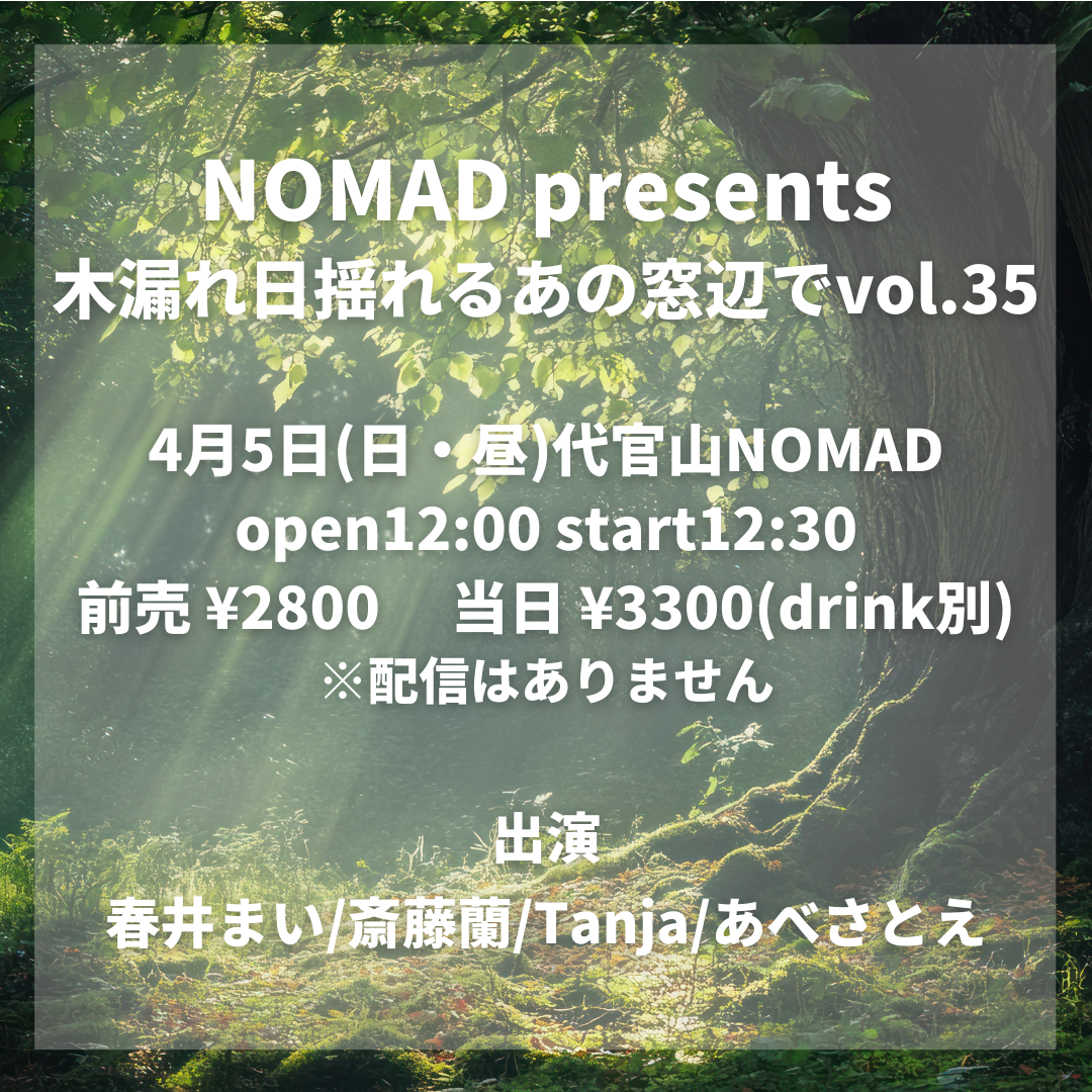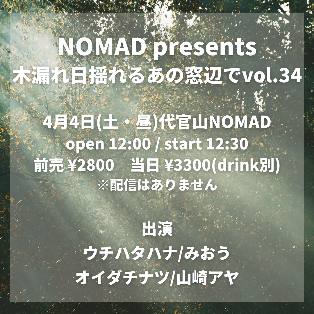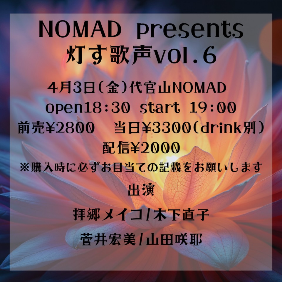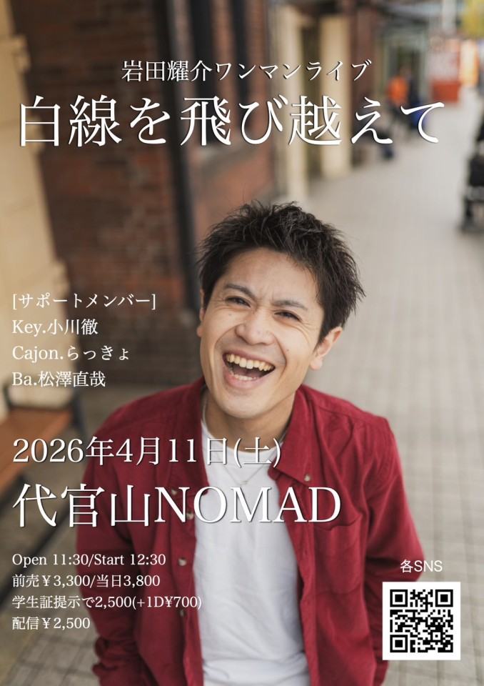 前売 ¥2,800 当日 ¥3,300(別途Drink ¥700)配信 ¥2,000