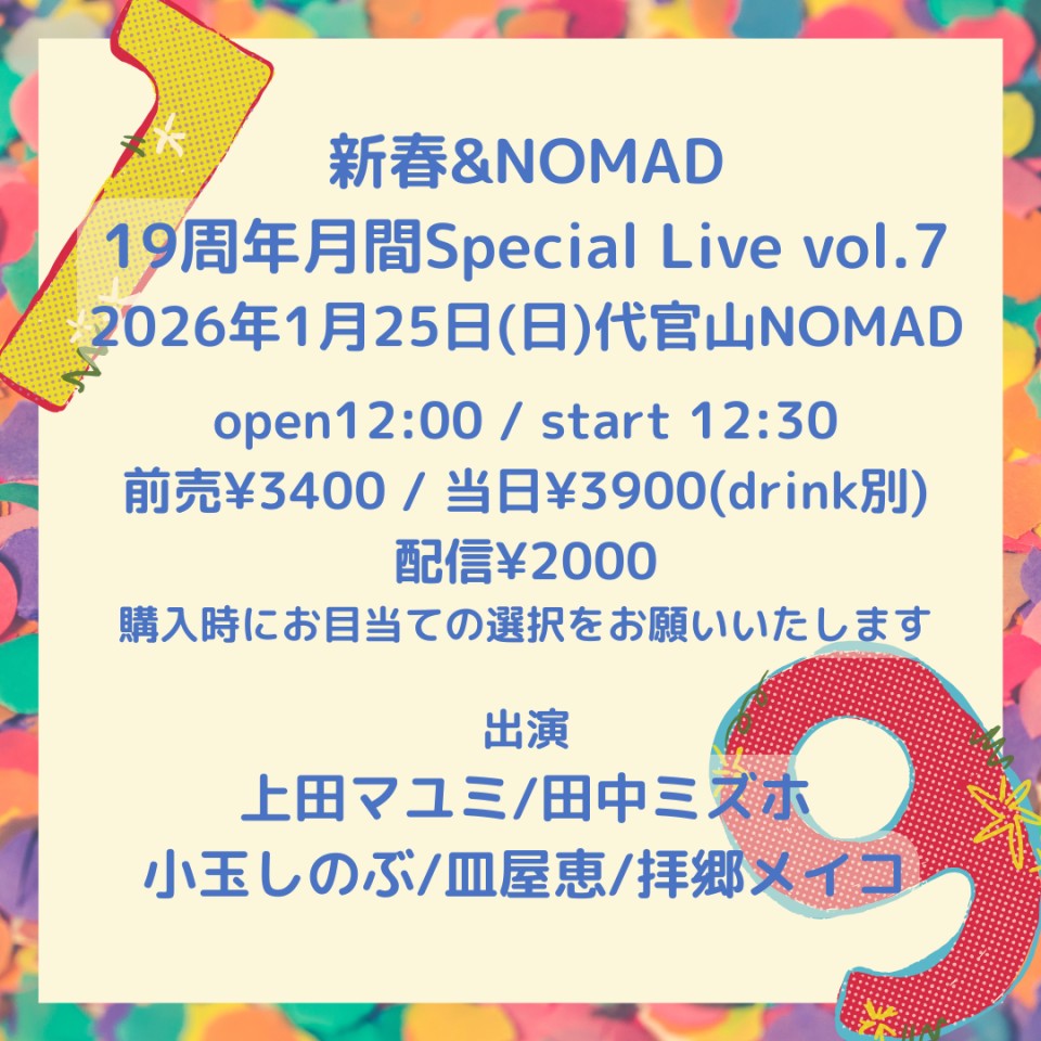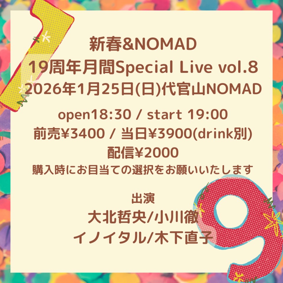 前売 ¥3,500 当日 ¥4,000(別途Drink ¥700)※30席限定配信 ¥2,500