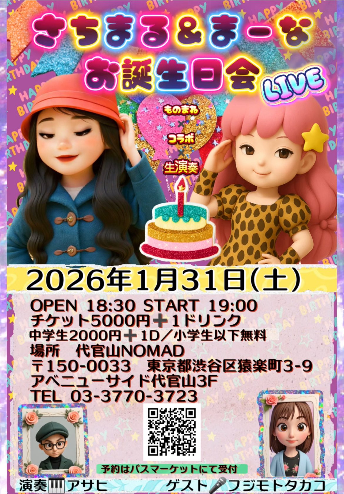 チケット 高校生以上:¥5,000 / 中学生:¥2,000 / 小学生以下:無料(各別途Drink ¥700)