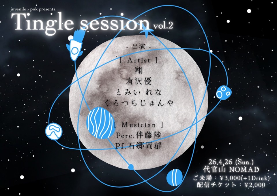 チケット ¥3,000(別途Drink ¥700)配信 ¥2,000